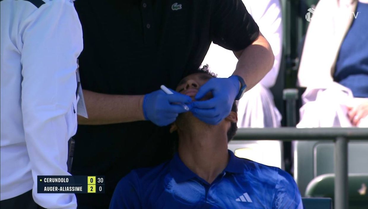 Әлемнің 10-ракеткасы Феликс Оже-Альяссим Индиан-Уэллсте өтіп жатқан жарыстағы матч кезінде иегін жарып алды, деп хабарлайды bassport.kz тілшісі.