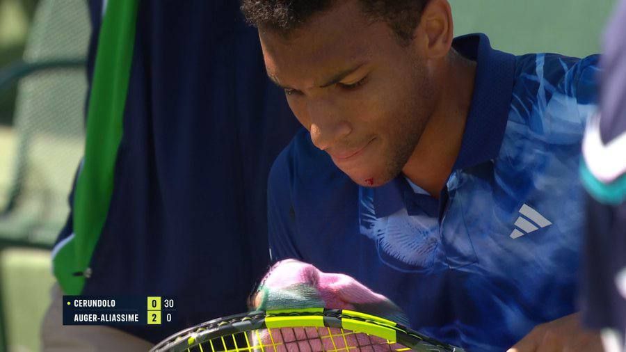 Әлемнің 10-ракеткасы Феликс Оже-Альяссим Индиан-Уэллсте өтіп жатқан жарыстағы матч кезінде иегін жарып алды, деп хабарлайды bassport.kz тілшісі.